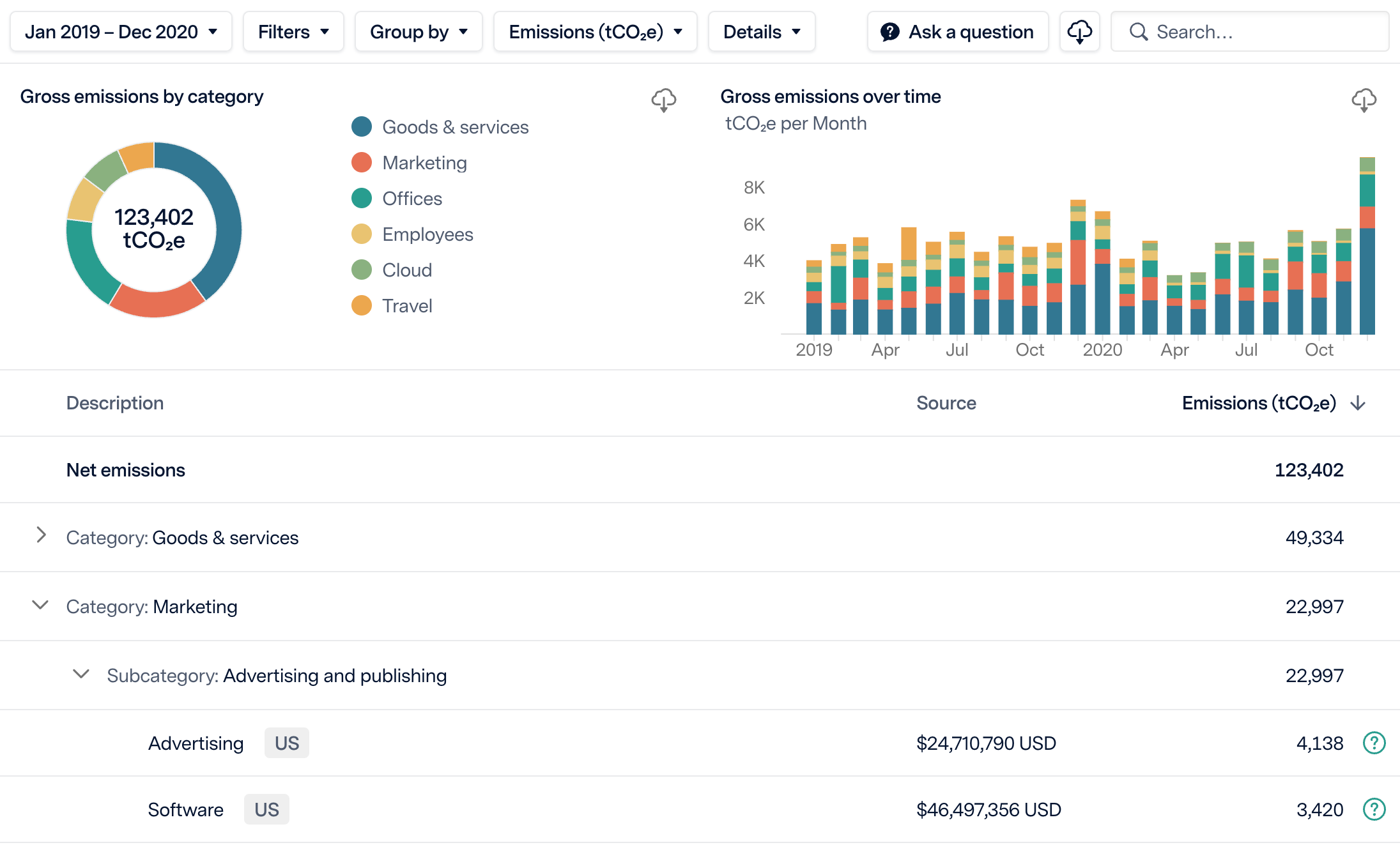 Watershed에서 제공하는 탄소 배출 대시보드(출처: Watershed 홈페이지) 이 회사의 기원도 Stripe에서 비롯된다. 세 창업자가 Stripe에서 만나기도 했고, 공동창업자 중 한 명인 Christian Anderson이 Stripe의 기후/탄소 관련 제품 라인인 Stripe Climate을 개발하는 데 많은 공헌을 했다. 이 Stripe Climate에 대해서는 예전에 Upwind에서도 다룬 적이 있다.