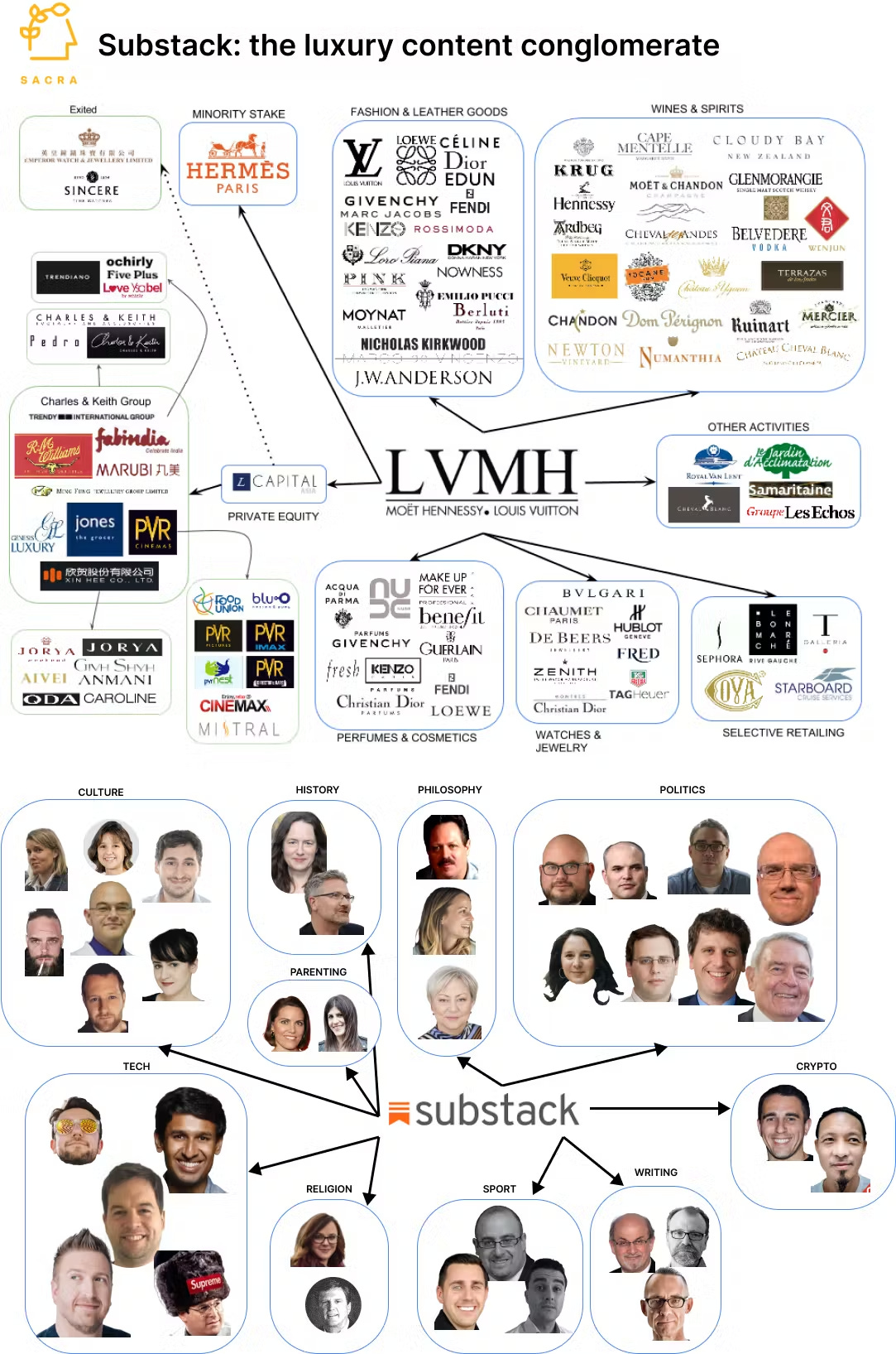 Jan-Erik Asplund는 Substack이 네임밸류가 높은 언론인들을 개개인별로 육성하여 묶어놓은, 마치 미디어계의 LVMH같은 존재라고 비유한 적이 있다.